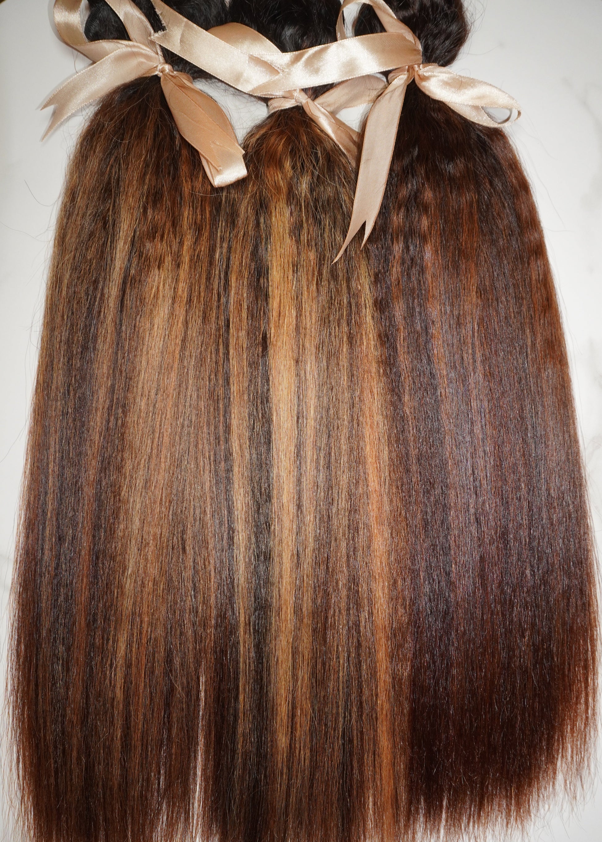 Custom order, if you prefer more blond or more brown highlights, kindly let us know via hi@silquelengths.com